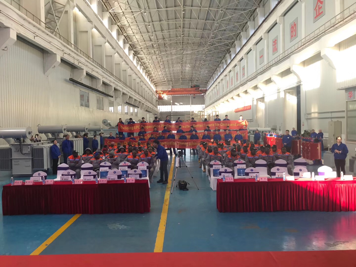 12月20日上午, “電化非洲從這里開始”尼日利亞學(xué)員培訓(xùn)結(jié)業(yè)典禮在集團(tuán)公司千山廠區(qū)變壓器裝配車間隆重舉行,這標(biāo)志首批學(xué)員圓滿完成項(xiàng)目前期學(xué)習(xí)培訓(xùn)即將載譽(yù)回國。鞍山市副市長高林、中國長城工業(yè)集團(tuán)有限公司副總裁張曉東、遼寧科技大學(xué)校長張志強(qiáng)及華冶集團(tuán)董事長馬黎明等出席了結(jié)業(yè)典禮。自今年年中尼日利亞項(xiàng)目正式啟動(dòng)后, 60名尼日利亞學(xué)員來到鞍山在我公司進(jìn)行EPC項(xiàng)目首期培訓(xùn)學(xué)習(xí),今天畢業(yè)的是首批32名學(xué)員,這批學(xué)員通過4個(gè)月的管理、技術(shù)、實(shí)操等全方位培訓(xùn),學(xué)員基本掌握了電工技術(shù)及變壓器工作基本原理及生產(chǎn)方法、工藝流程,回國后將繼續(xù)為項(xiàng)目的前期施工做準(zhǔn)備。